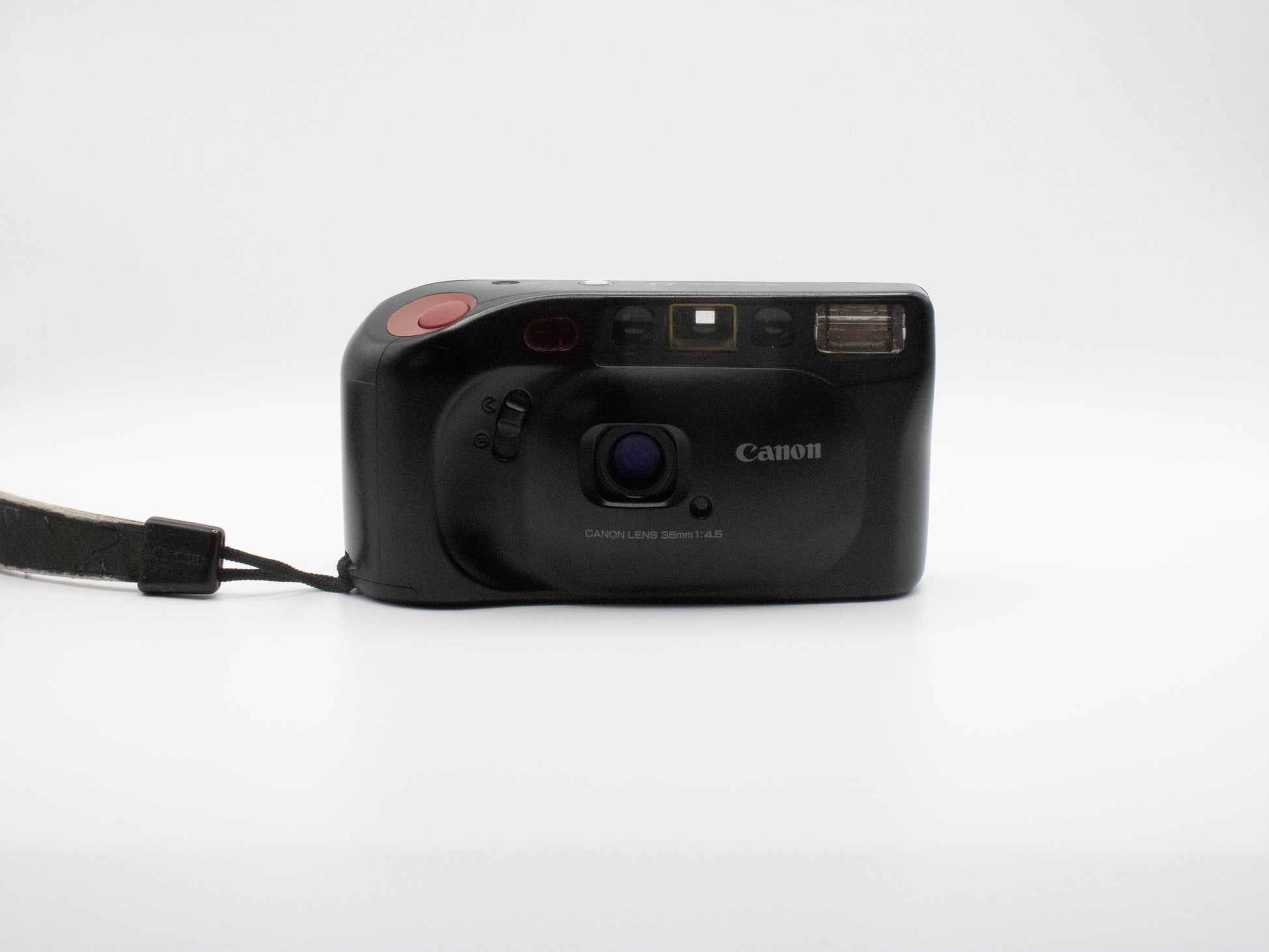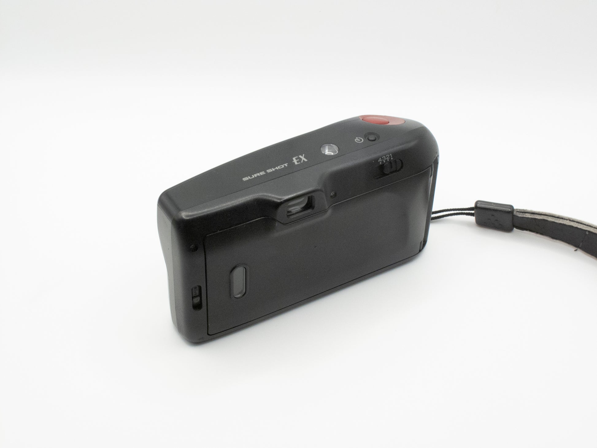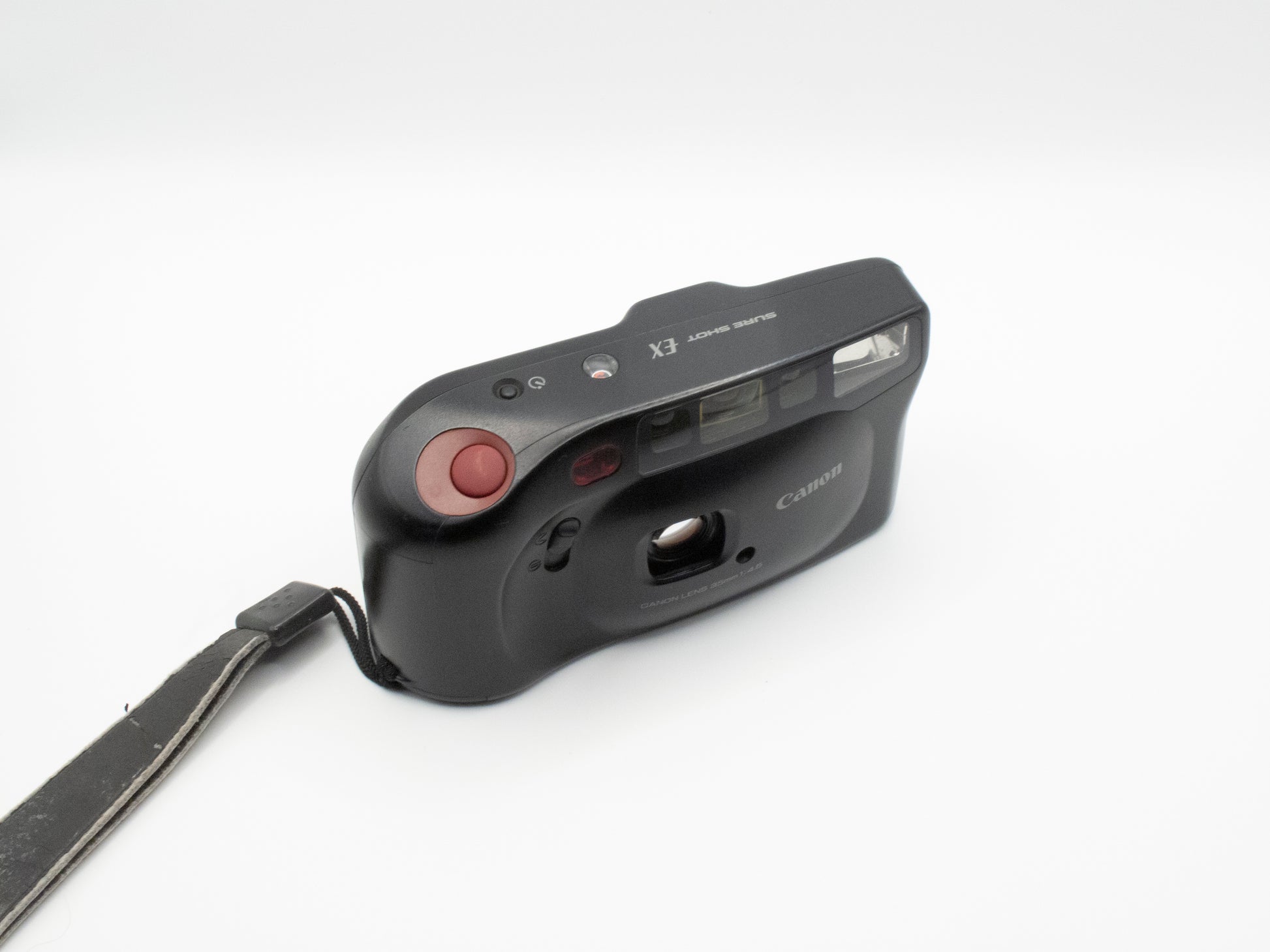 The Canon Sure Shot EX is a compact, lightweight point-and-shoot film camera designed for ease of use and versatility. It features a 35mm f/4.5 lens, a built-in flash, and an automatic focus system. It supports ISO settings from 100 to 400, allowing for flexible shooting in different lighting conditions. The Canon Sure Shot EX uses 35mm film and is powered by a 1CR5 battery, providing reliable performance for casual photography enthusiasts.